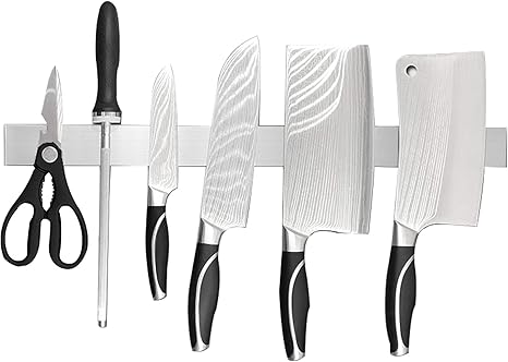 Amazon 多目的機能ステンレス製マグネットナイフラック 壁掛け包丁立て 包丁スタンド 磁気ナイフホルダー ナイフラックストリップ 取り外し可能なフック6個付き キッチンナイフ キッチン用品 バー ガレージツール用 簡単装着 キッチン収納 16インチ 包丁立て