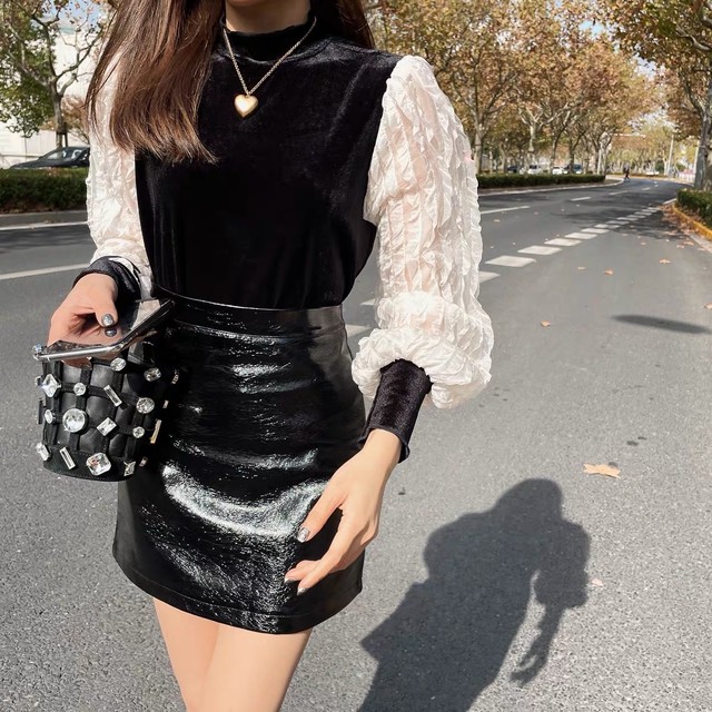 レザーミニスカートパンツ 甘辛スタイル ハイウエスト 超ミニ スカート 6214 Buyma